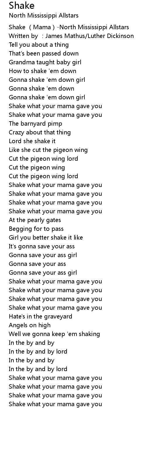 | [00:00.597] | Shake (Mama)-North Mississippi Allstars |