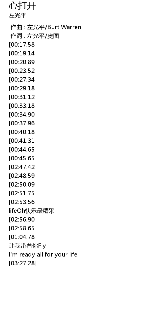 | [03:03.65][02:47.42][02:33.85][01:51.10][00:48.62] | 请你把心打开 |