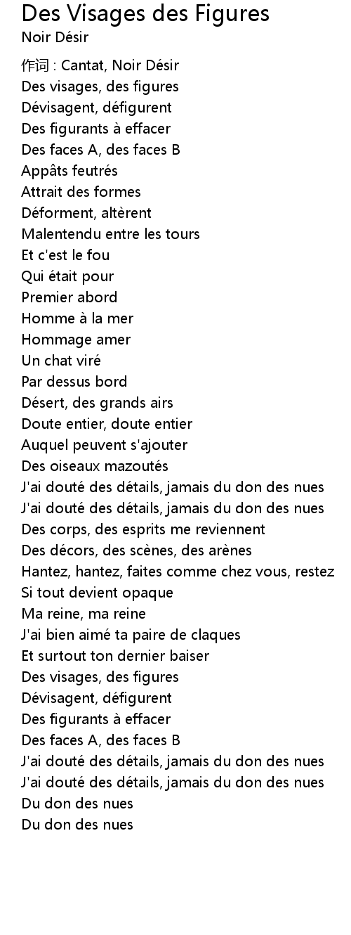 | Song | Des Visages des Figures |