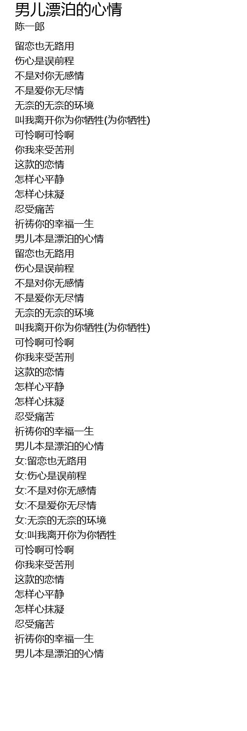 | [03:50.95] | 男儿本是漂泊的心情 |