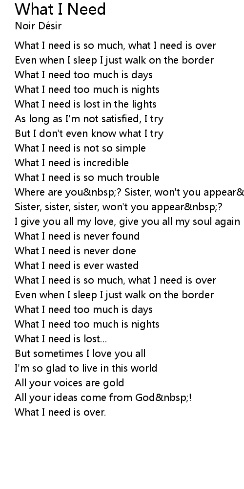 What I Need Lyrics