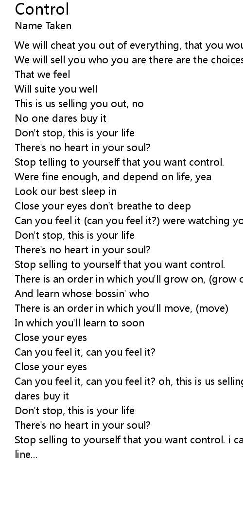 Stop selling to yourself that you want control. i can't, i can't breath outta line... |