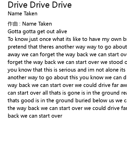 | To know just once what its like to have my own breath and we know its no use to pretend that theres another way way to go about this you know we can drive far away we can forget the way back we can start over we could drive far away we can forget the way back we can start over we stood on top for awhile your bad ideas you know that this is serious and im not alone its no use to pretend that theres another way to go about this you know we can drive far away we can forget the way back we can start over we could drive far away we can forget the way back we can start over all thats is gone is in the ground reach for the surface all thats good is in the ground buried below us we can drive far away we can forget the way back we can start over we could drive far away we can forget the way back we can start over |