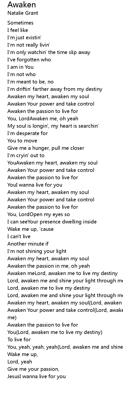 Awaken my heart, awaken my soul(Lord, awaken me to live my destiny) |