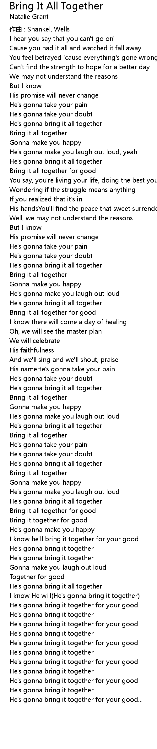 | He's gonna bring it together for your good | |
