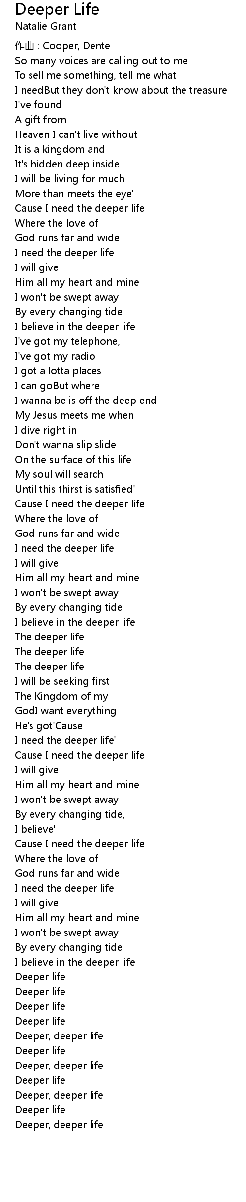 | Cause I need the deeper life | |