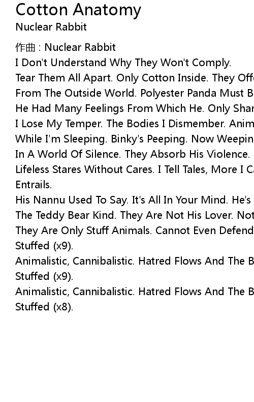 | Lifeless Stares Without Cares. I Tell Tales, More I Can' t Bare. Stuffing Entrails. | |
