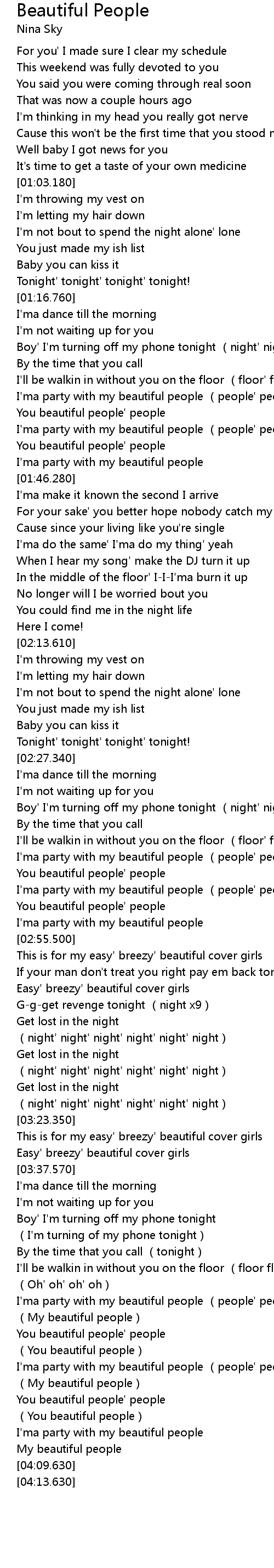 | [01:36.860] | I'ma party with my beautiful people (people' people) |