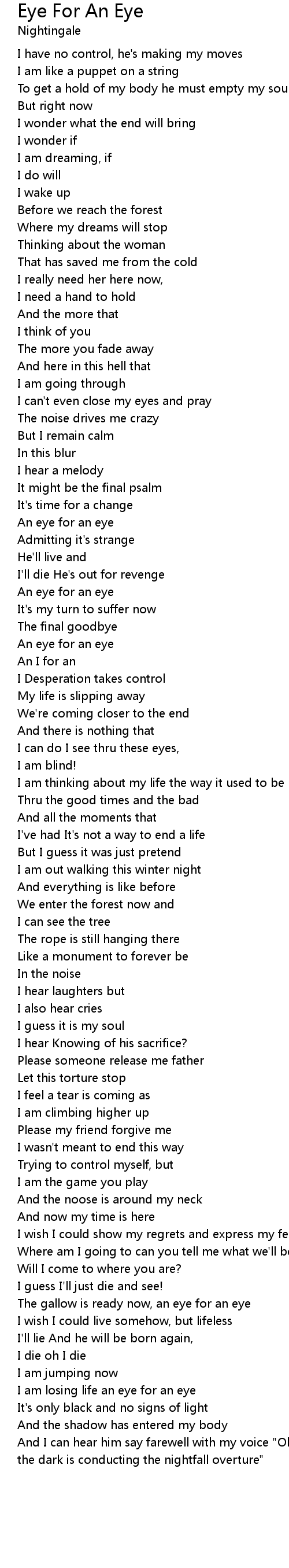 I am losing life an eye for an eye |