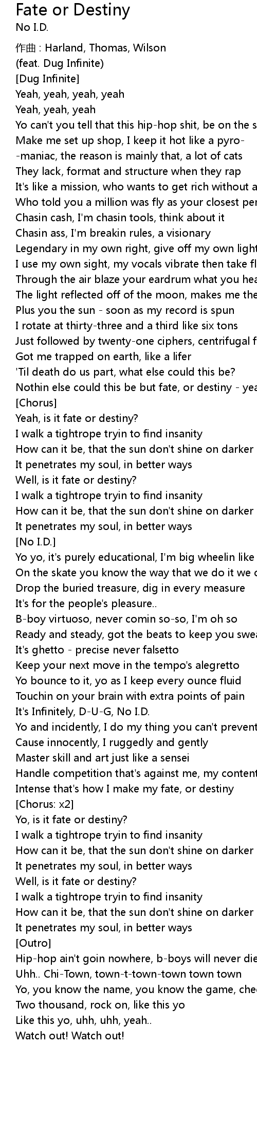 | Nothin else could this be but fate, or destiny - yeah | |