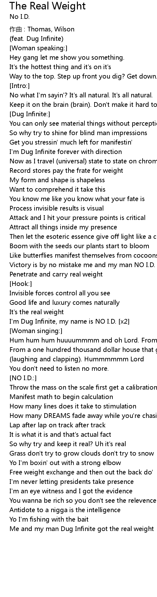 | I'm Dug Infinite, my name is NO I.D. [x2] | |