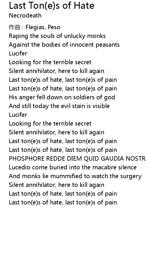 | Last ton(e)s of hate, last ton(e)s of pain | |