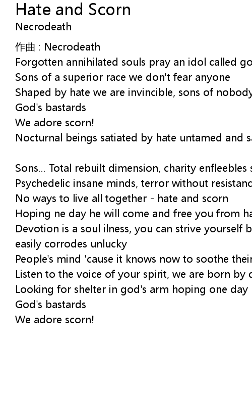| Song | Hate and Scorn |