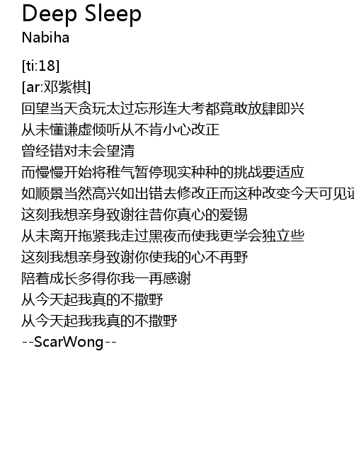 | [01:29.586] | 这刻我想亲身致谢往昔你真心的爱锡 |