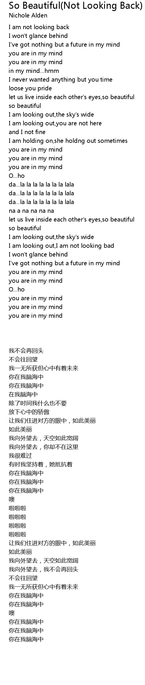 I am not looking back |