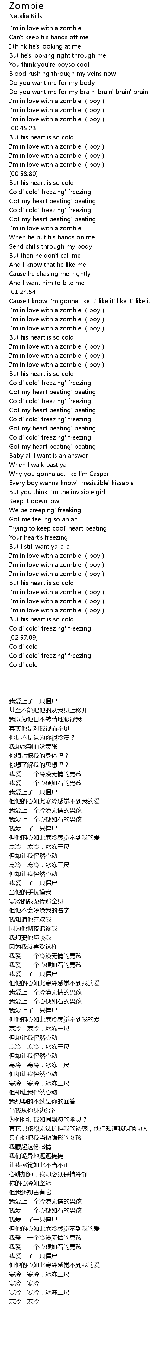 | [02:47.72] | I'm in love with a zombie (boy) |