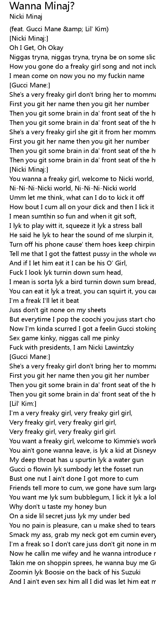 How you gone do a freaky girl song and not include Nicki Minaj |