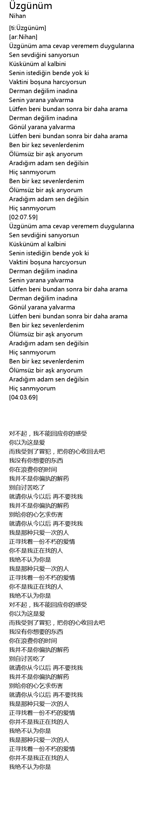 | [03:02.49] | Lütfen beni bundan sonra bir daha arama |