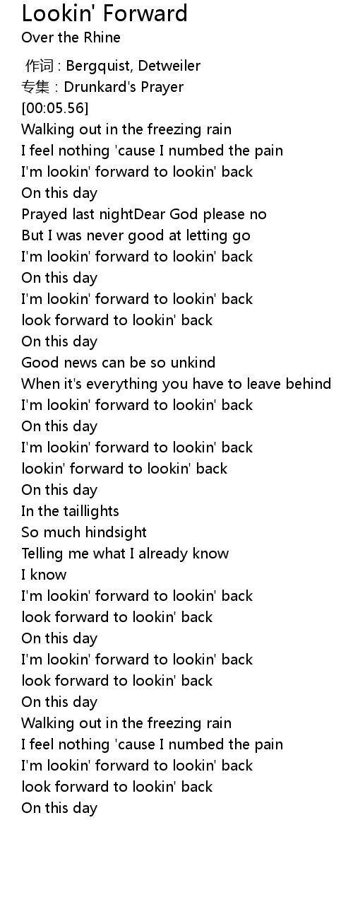 | [00:51.76] | I' m lookin' forward to lookin' back |