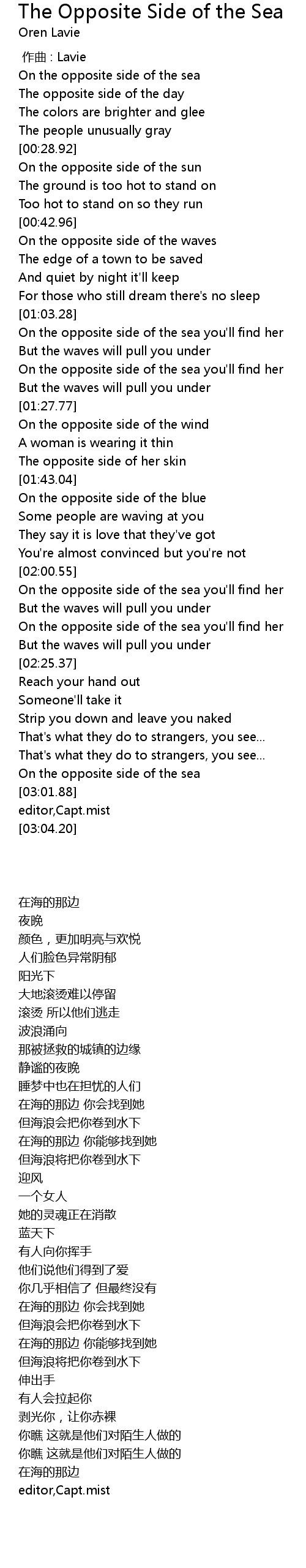 | [02:04.34] | On the opposite side of the sea you'll find her |