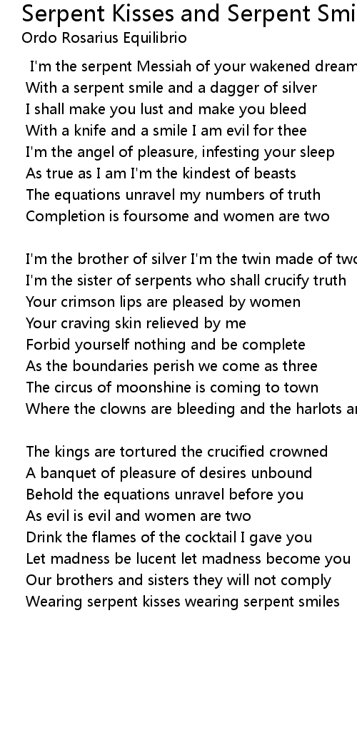 Wearing serpent kisses wearing serpent smiles |