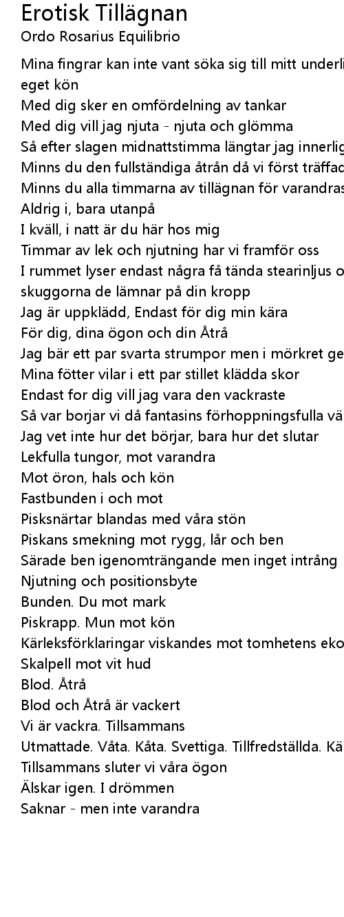 | Mina fingrar kan inte vant s ka sig till mitt underliv d jag f raktar mitt eget k n | |