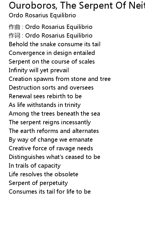 | Song | Ouroboros, The Serpent Of Neither Beginning Or End |