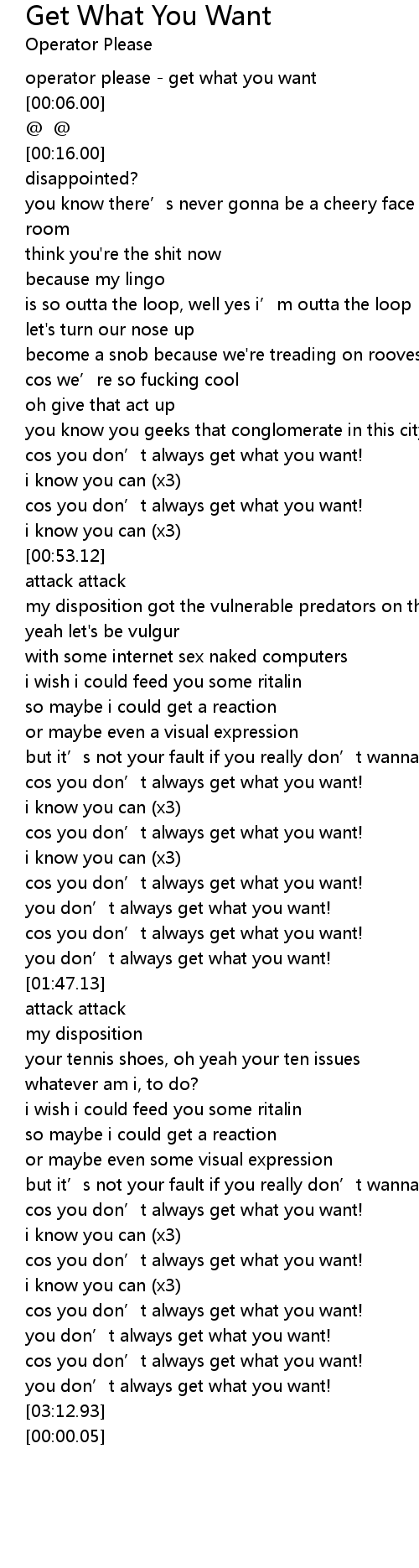 | [00:01.00] | operator please - get what you want |
