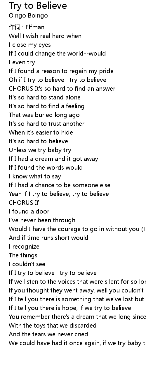 | Oh if I try to believetry to believe | |