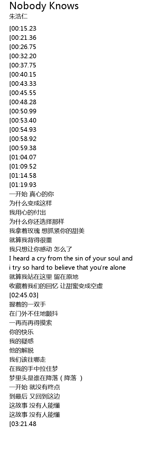 | [01:57.59][00:32.20] | 没 人了解我 (AH) |