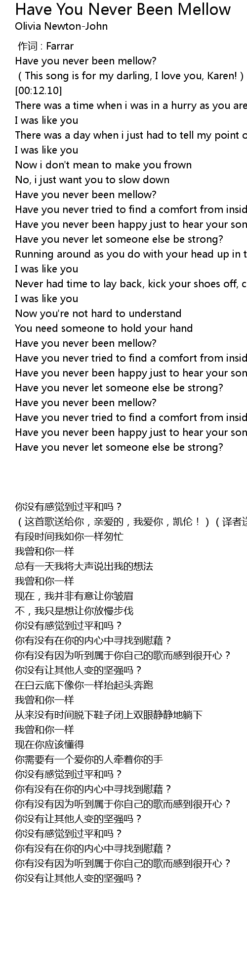 | [03:36.75] | Have you never been happy just to hear your song? |