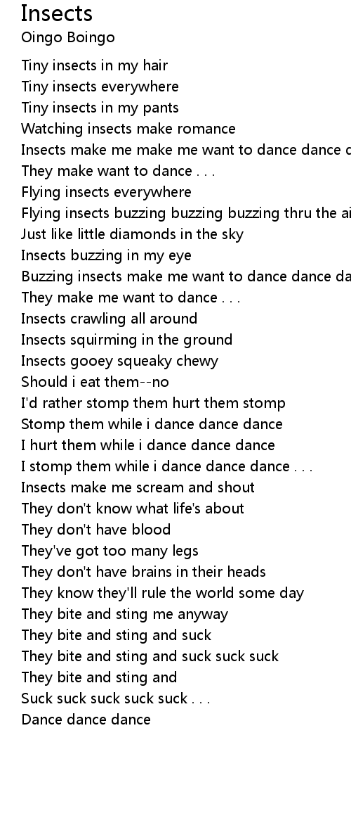Insects make me make me want to dance dance dance |