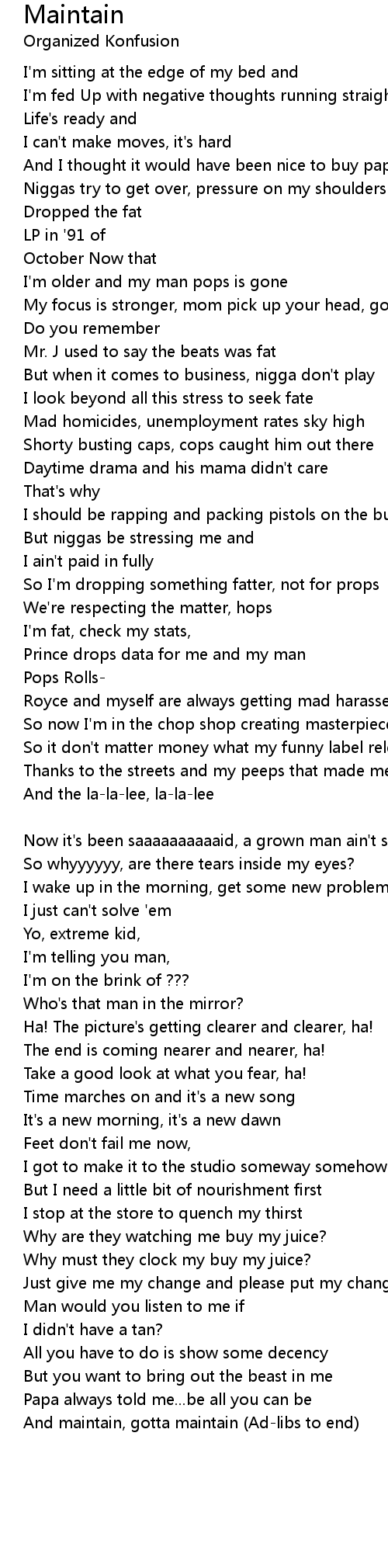 We gotta maintain (Repeat 8x) [Pharoahe Monch] |