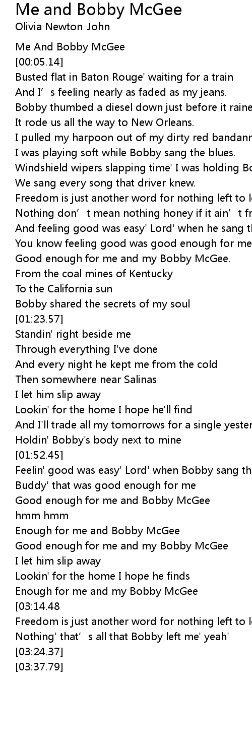 | [02:45.52] | Good enough for me and my Bobby McGee |