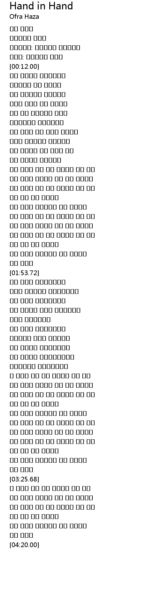 | [01:59.76] | יד ביד לאוהבים |
