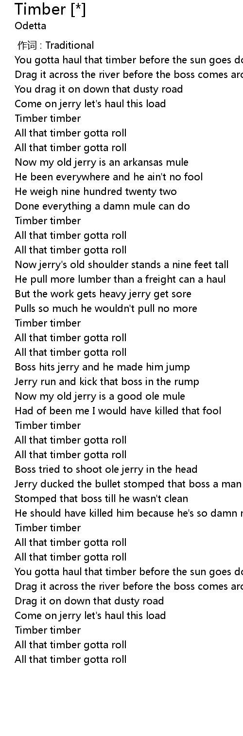 | [01:51.74] | Timber timber |