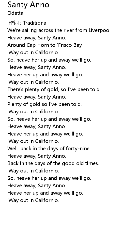 | [00:14.79] | Around Cap Horn to 'Frisco Bay |