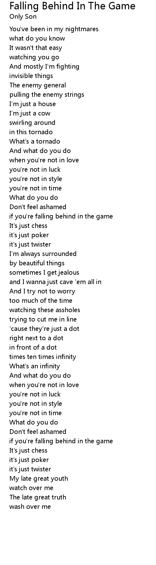 Falling Behind In The Game Lyrics