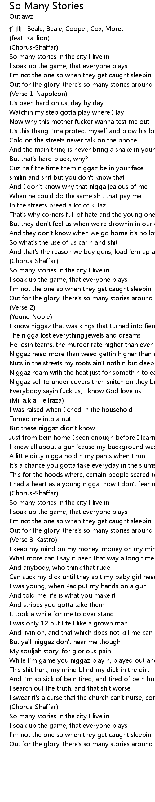 | Out for the glory, there' s so many stories around my way | |