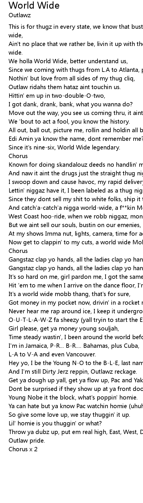 | Hey yo, I be the Young N-O to the B-L-E, last name O-U-T-L-A-W-Z, | |