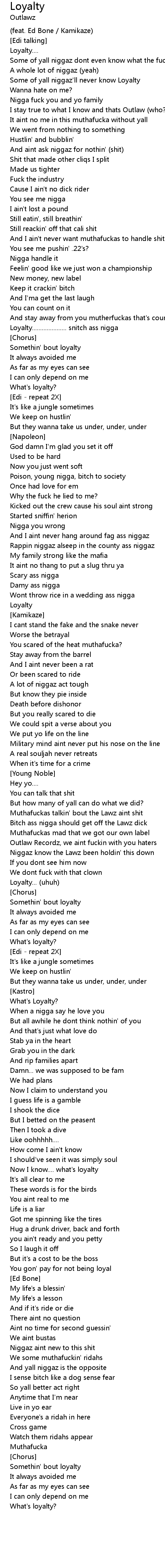 | Loyalty..................... snitch ass nigga | |