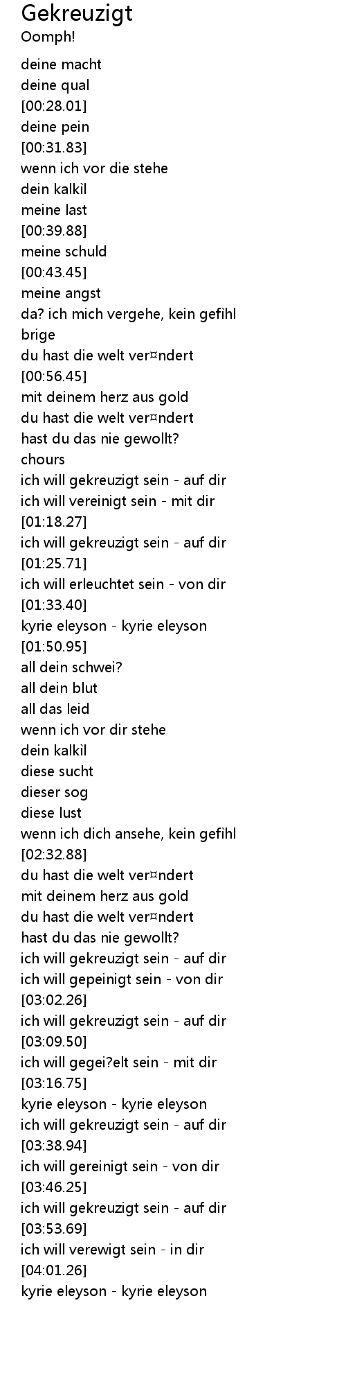 | [03:34.13] | ich will gekreuzigt sein auf dir |