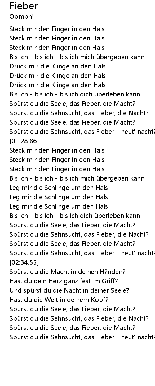 | [03:28.75] | Spürst du die Seele, das Fieber, die Macht? |