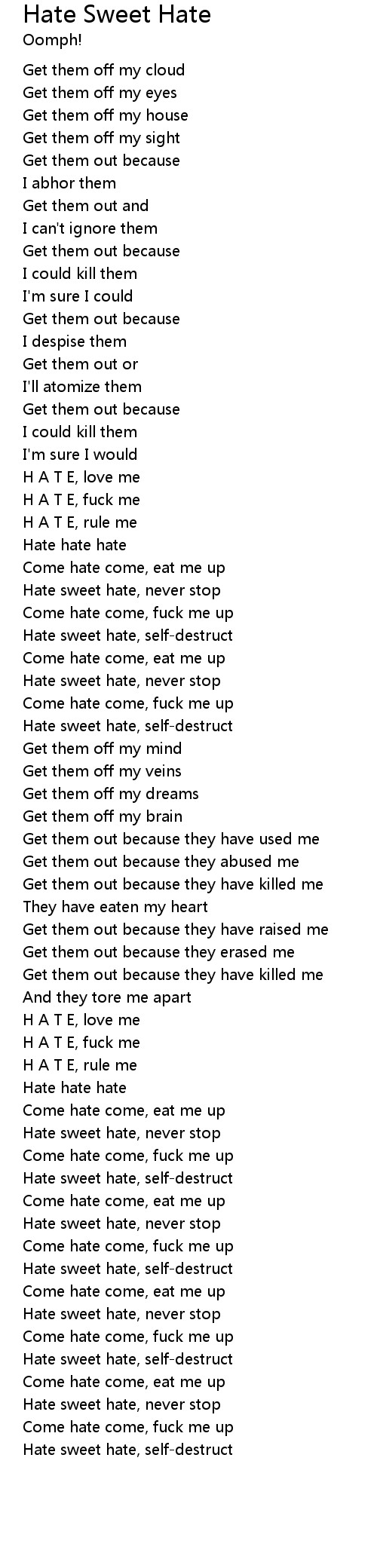 | Hate sweet hate, self-destruct | |