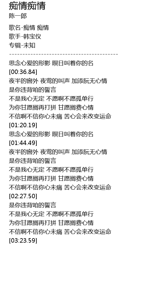 | [00:39.20] | 夜半的窗外 夜莺的叫声 加添阮无心情 |