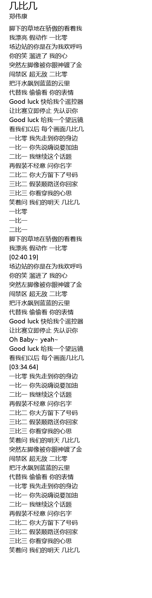 | [02:35.37] | 我漂亮 假动作 一比零 |