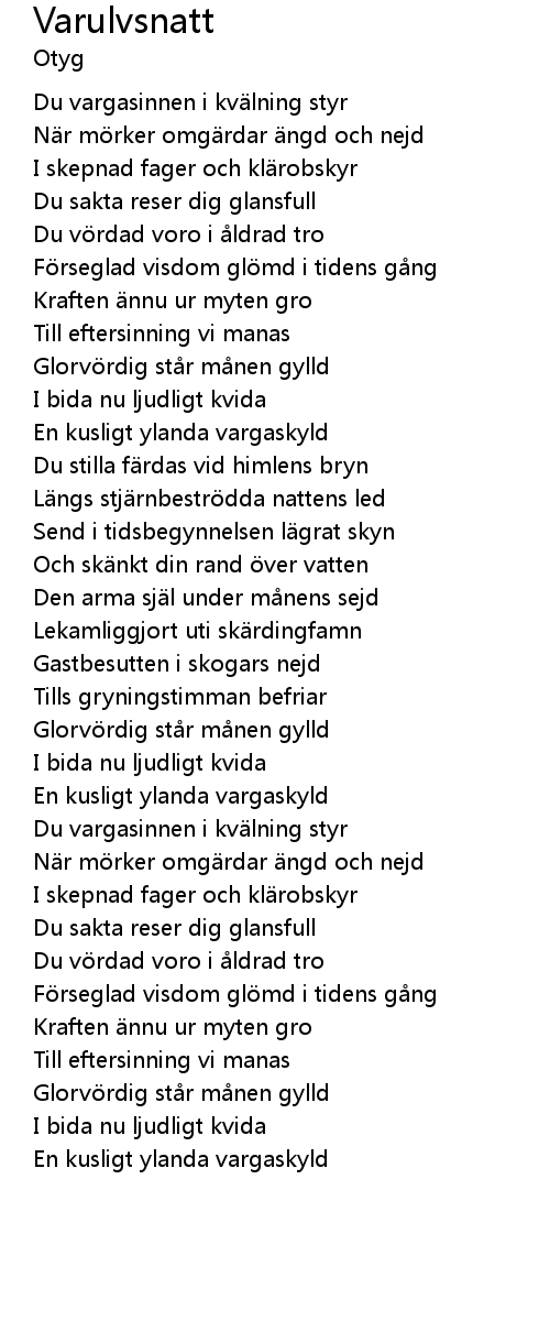 | Du vargasinnen i kvälning styr | |