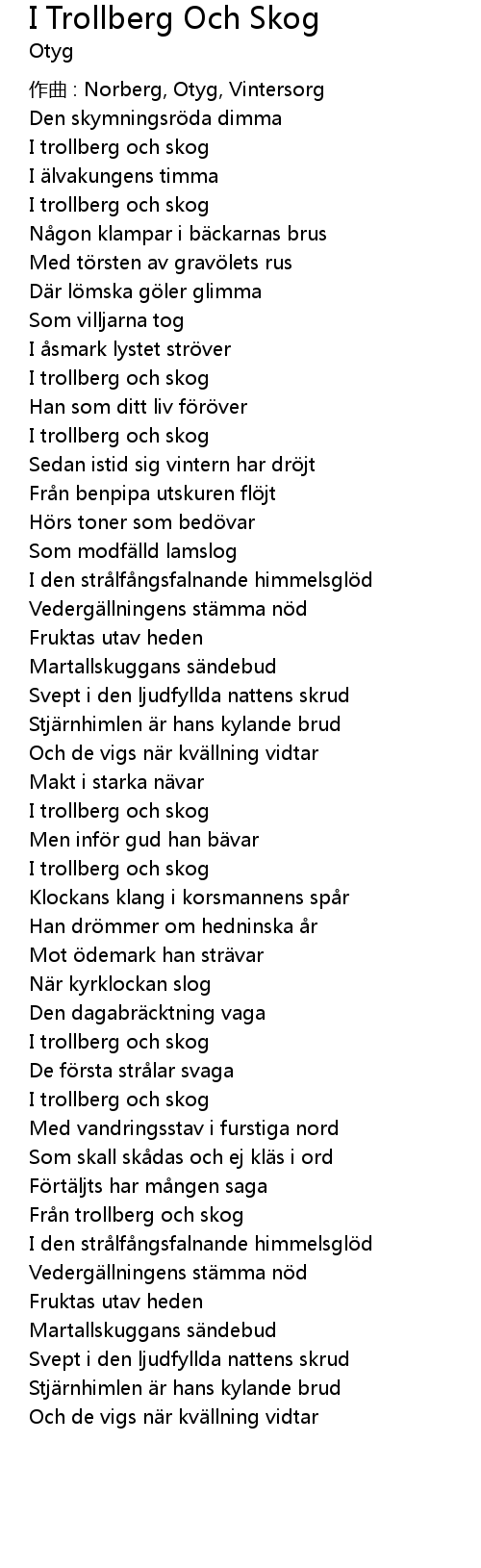 | 作曲 : Norberg, Otyg, Vintersorg | |