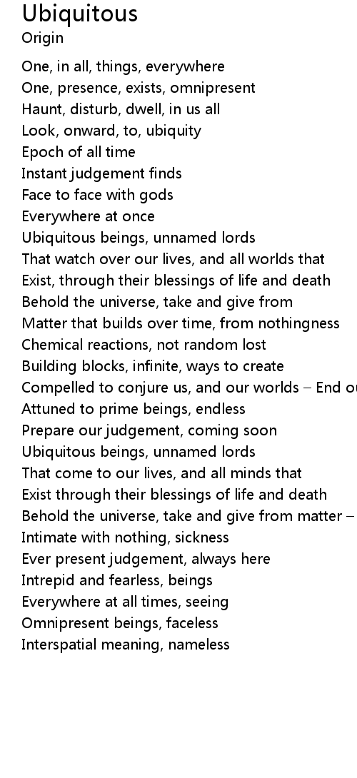 | One, presence, exists, omnipresent | |
