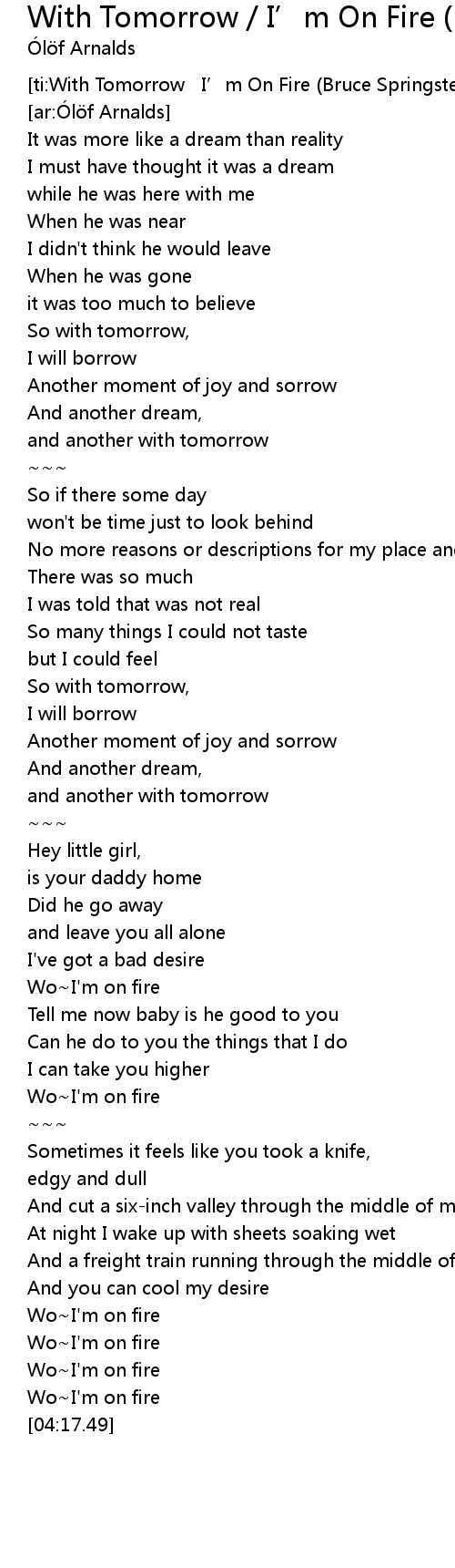 | [ti:With Tomorrow I’m On Fire (Bruce Springsteen cover)] | |